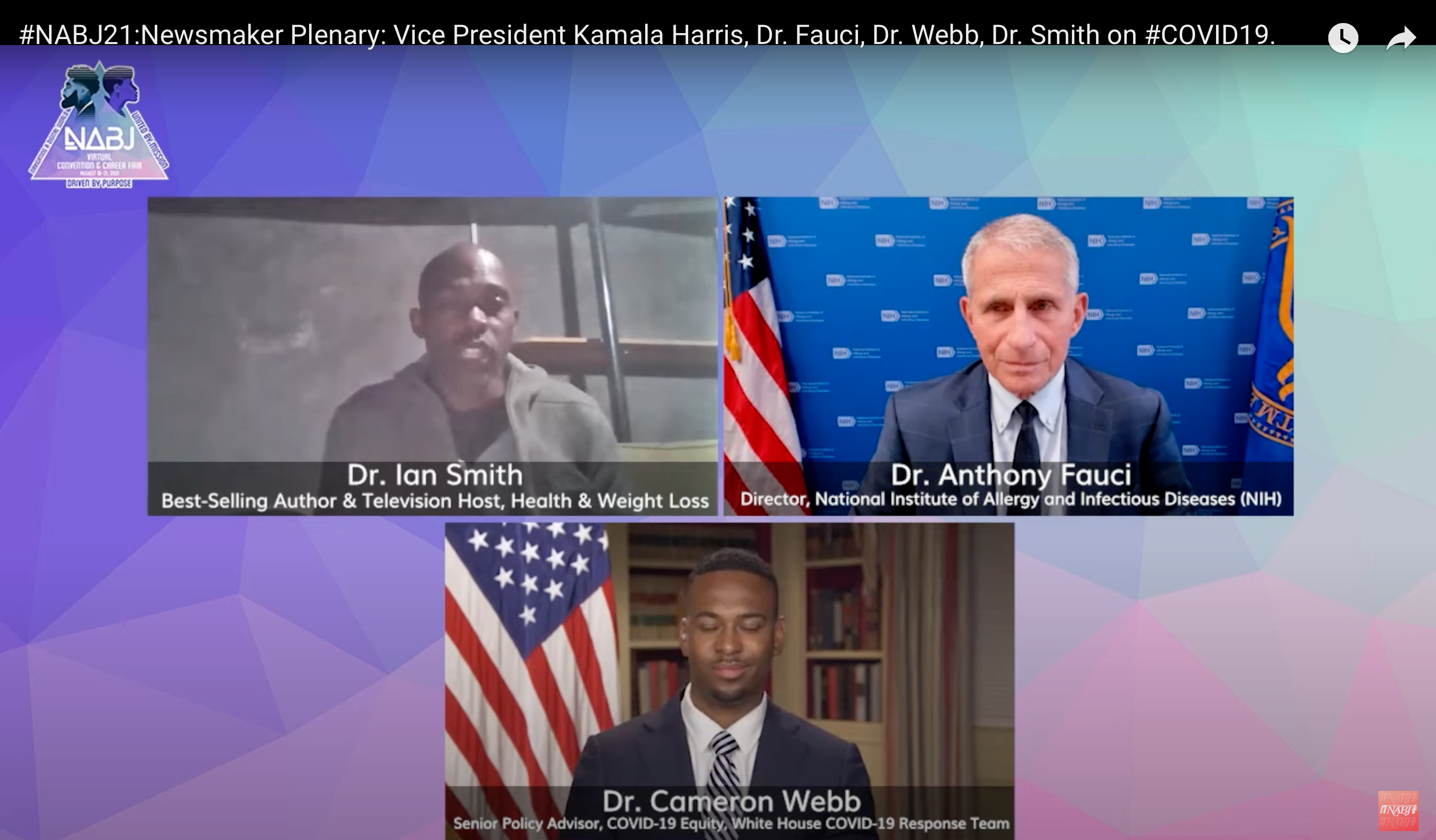 Vice President Kamala Harris paid homage to journalists covering the ongoing COVID-19 pandemic at the 2021 NABJ virtual Newsmaker Plenary, one of the highlights of the 2021 NABJ Virtual Convention Aug. 18-21 that was filled with special guests.