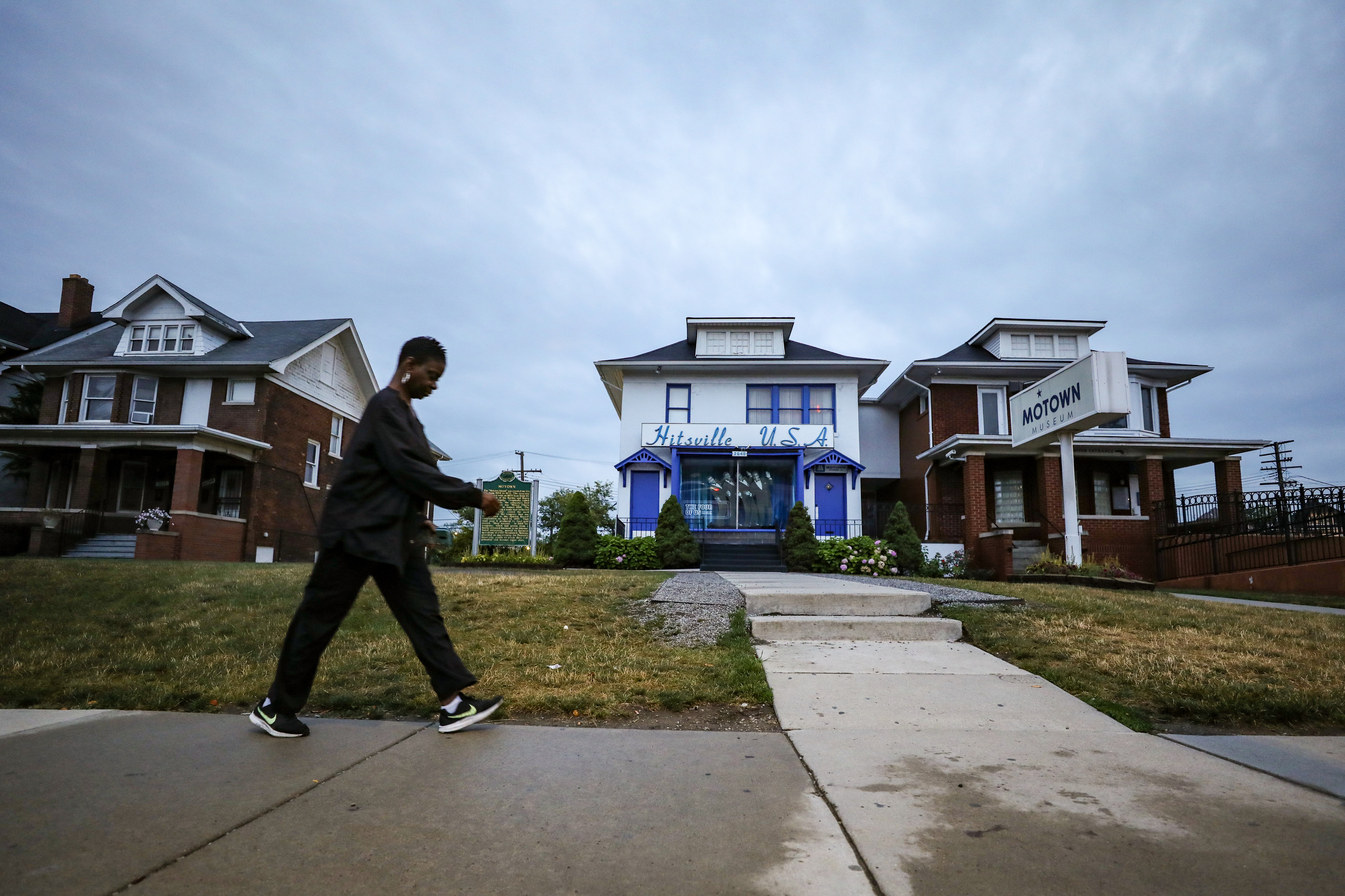 Angela Burress, (CQ) 50, walks to work in front of the historic Motown Museum, nicknamed Hitsville USA, on Tuesday, July 31, 2018. Burress, who has lived in Detroit all her life, says she’s seen the city slowly evolve into its comeback moment.