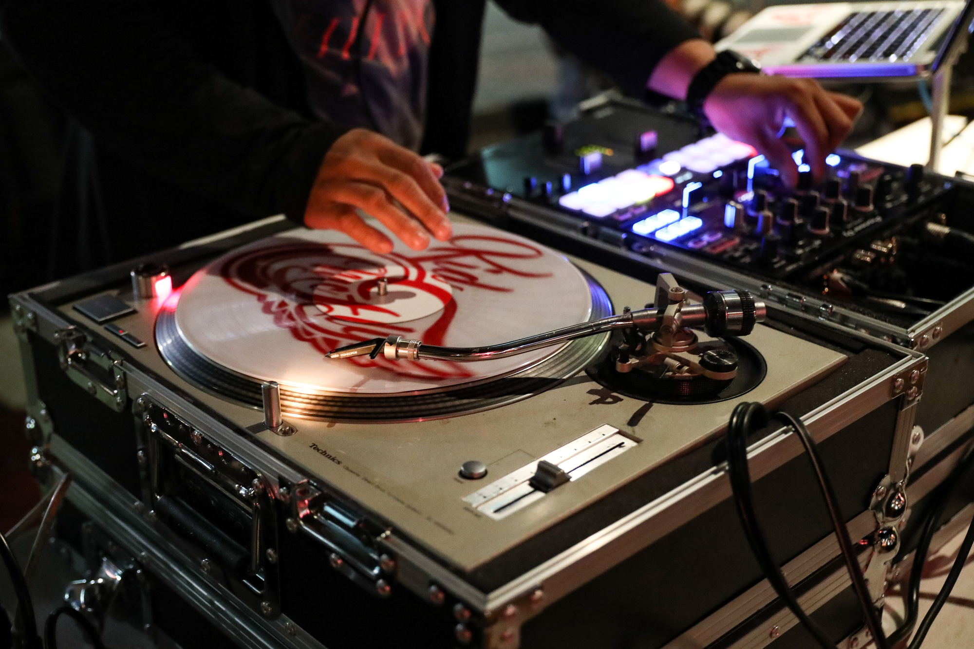 073118MA_nightlife3 DJ Kid McFly spins on Tuesday night, July 31, 2018, at the historic Flood’s Bar and Grille. The venue in the heart of downtown Detroit is part of the city’s nightlife. MARTHA ASENCIO RHINE/NABJ Monitor
